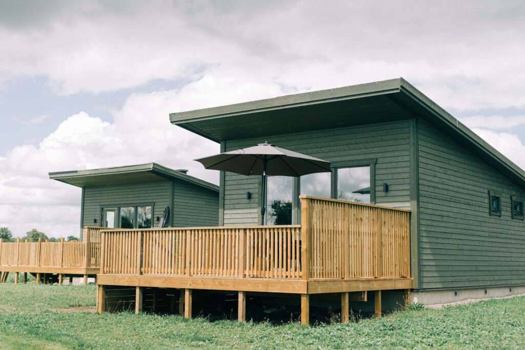 Nybyggda stugor med sjöutsikt och gott om plats.